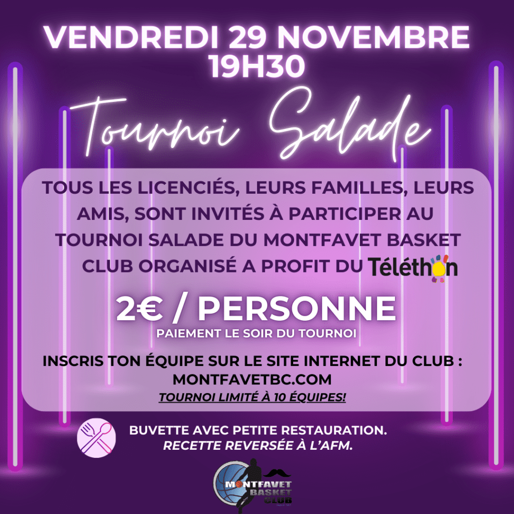 Inscris ton équipe au tournoi salade du vendredi 29 novembre à 19h30.
